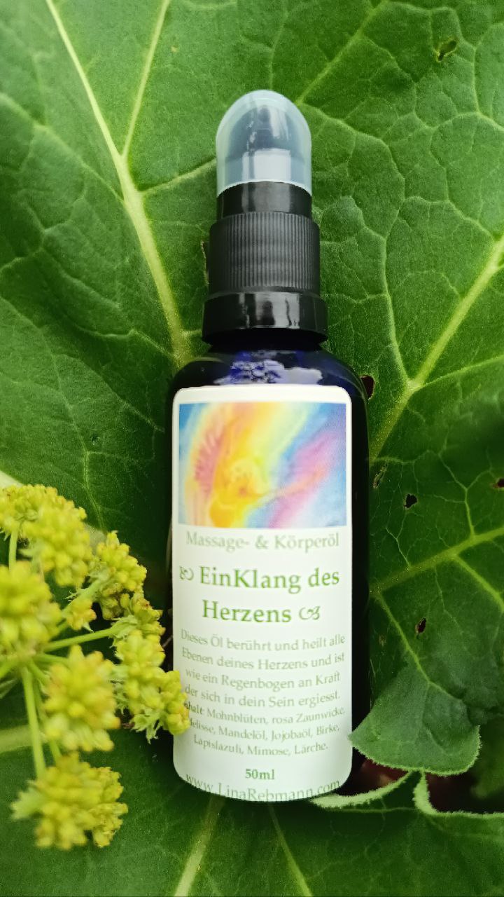Dieses Öl wirkt heilsam auf dein Herz, balanciert alle Chakras aus und löst Verspannungen auf allen Ebenen des Körpers. Dabei pflegt es die Haut, spendet Feuchtigkeit und legt sich wie ein sanfter Balsam um die Seele.Es berührt und heilt alle Ebenene des Herzens und ist ein Regenbogen der Kraft.